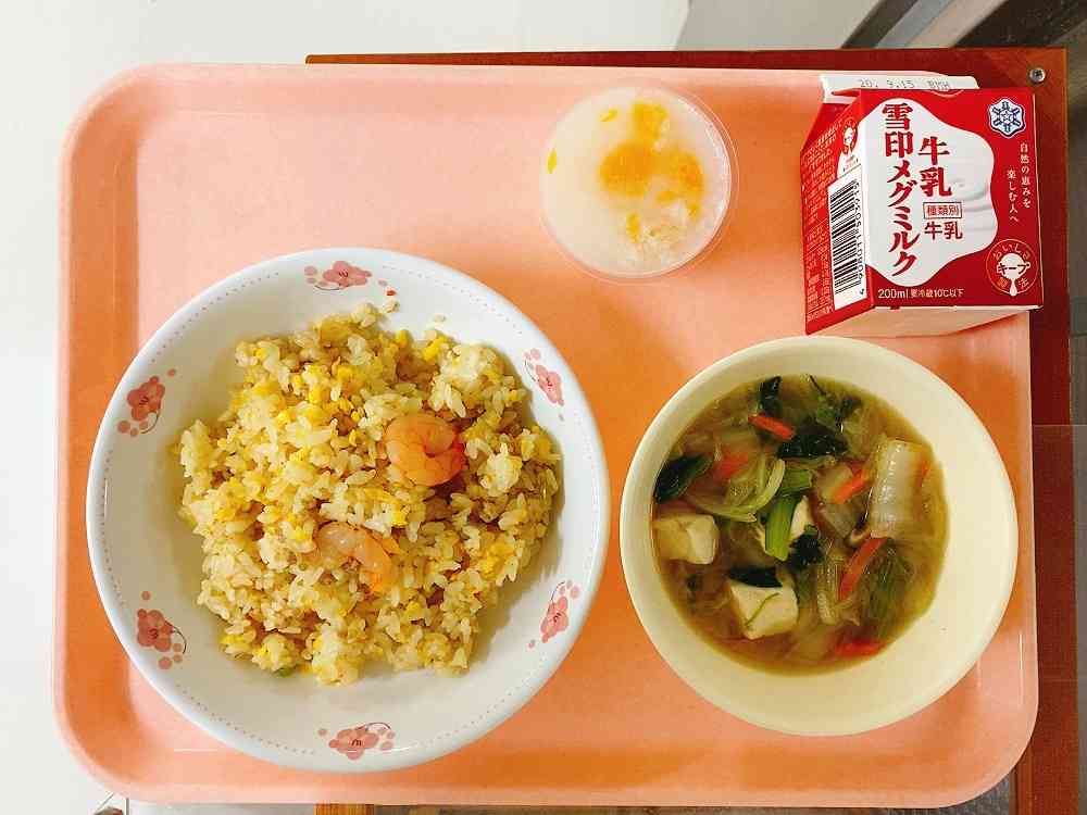 五目炒飯、春雨スープ、1-3のリクエスト給食(カルピスゼリー)