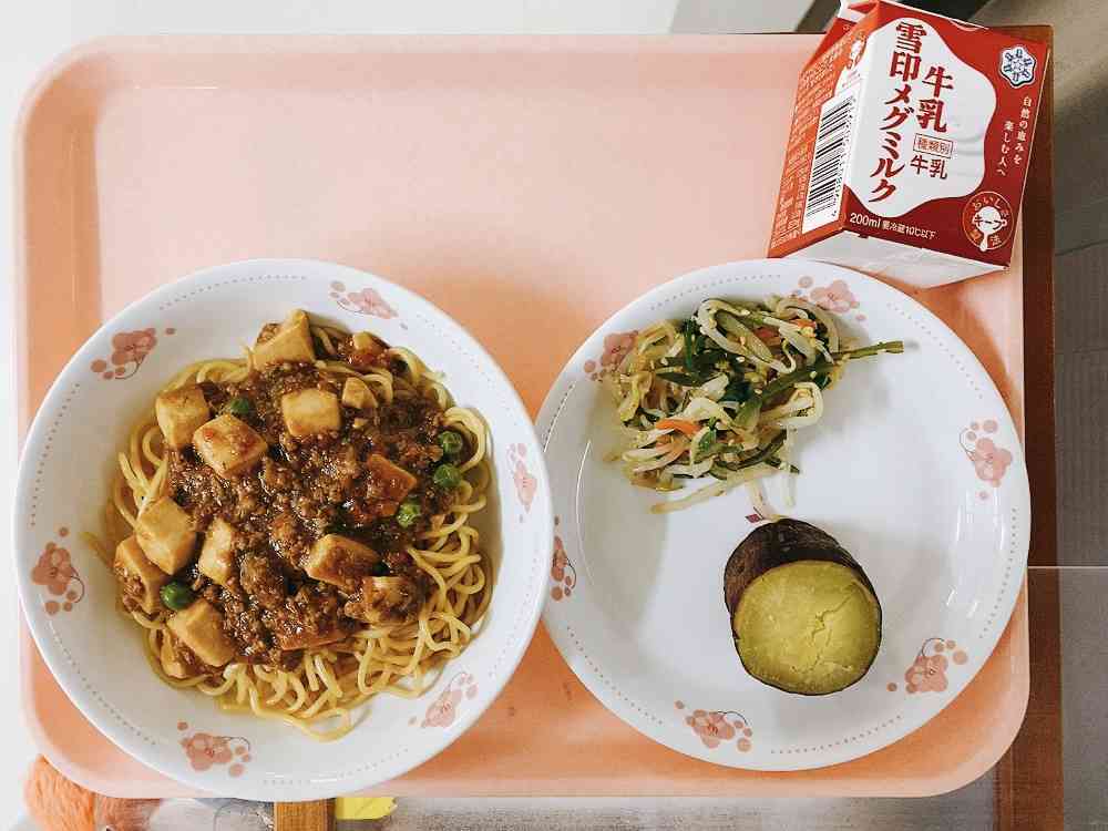 麻婆麺、中華サラダ、焼き芋