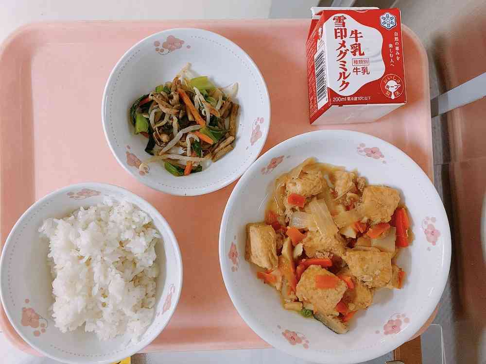 ごはん、生揚げのそぼろ煮、しめじ和え
