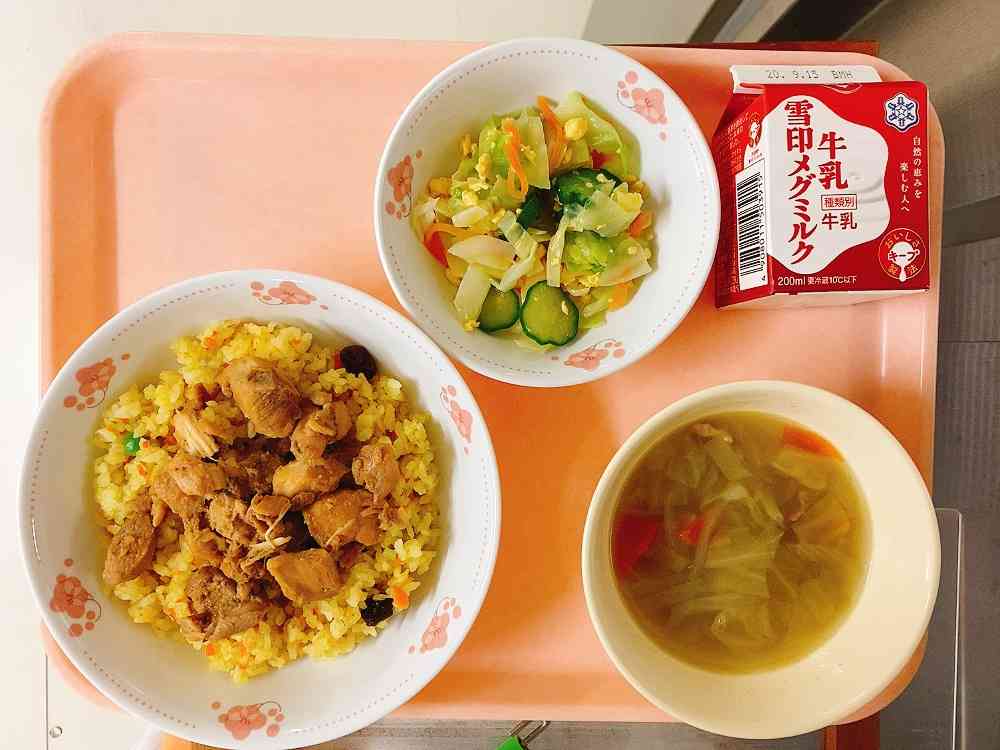 ダンパウ、炒り卵入りサラダ、豆入り野菜スープ