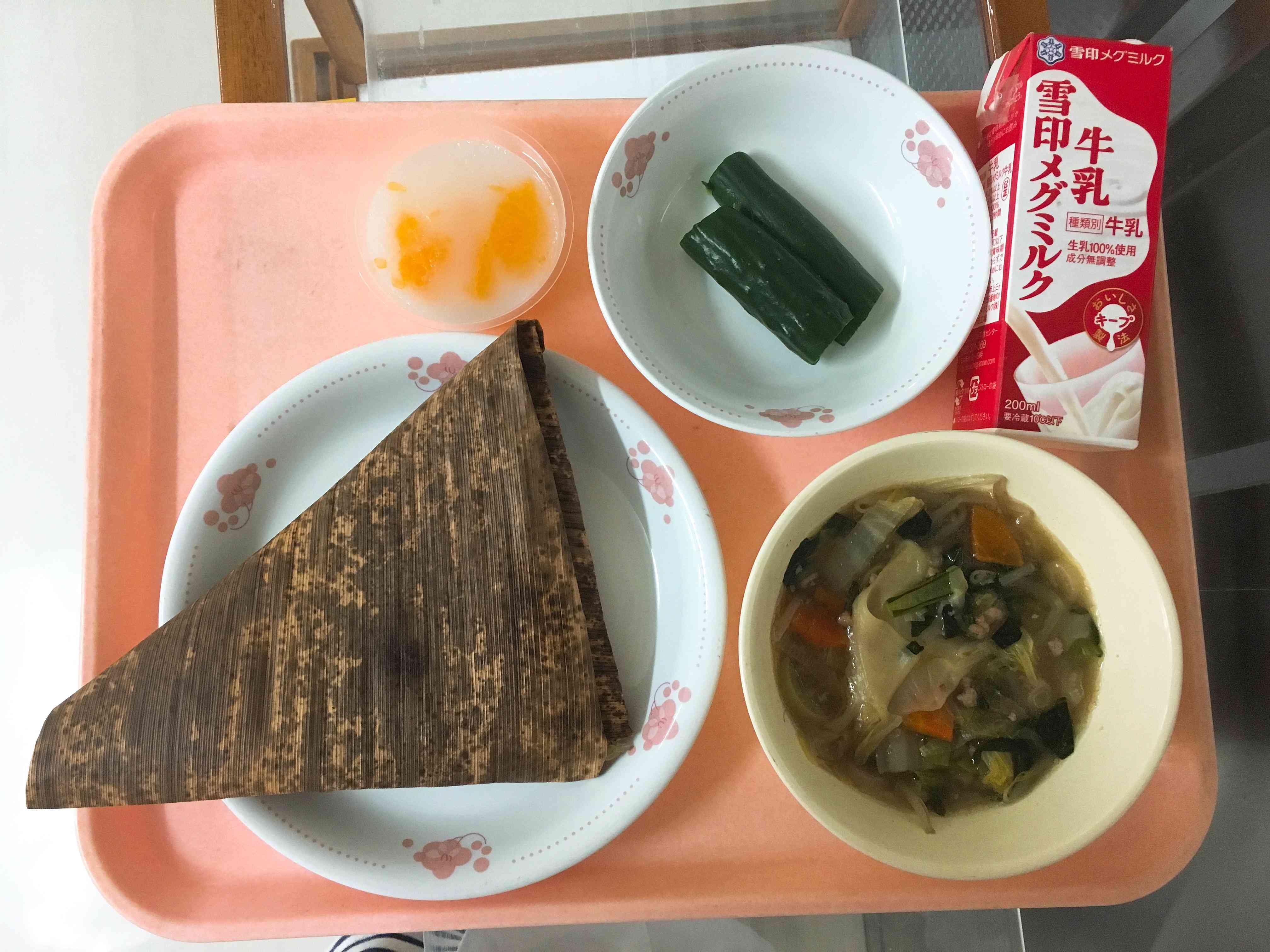 中華ちまき、舟きゅうり、ワンタンスープ、カルピスゼリー