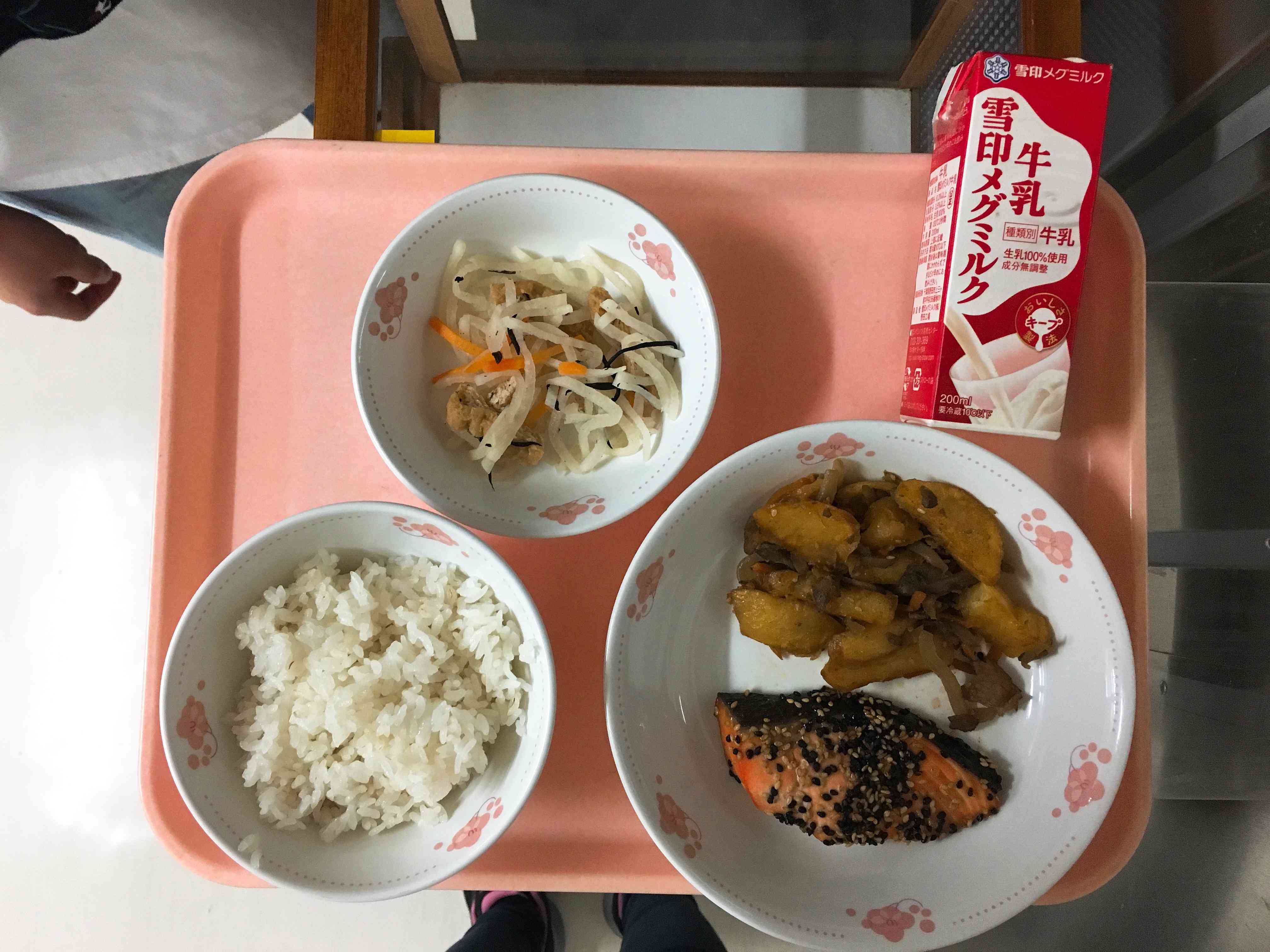 ごはん、鮭の南部焼き、じゃがいものきんぴら、おすわい