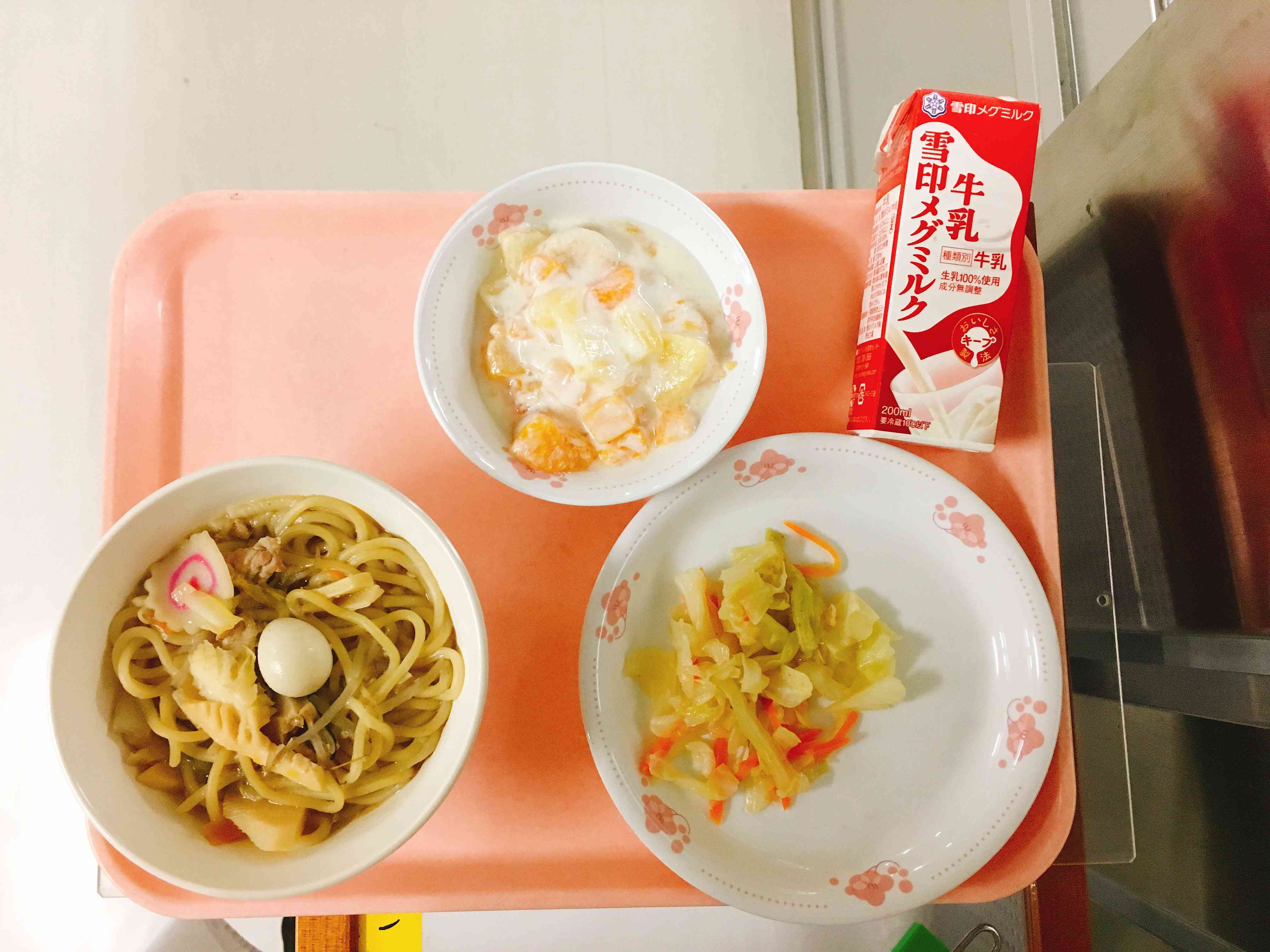 長崎ちゃんぽん、野菜の甘酢漬け、フルーツヨーグルト