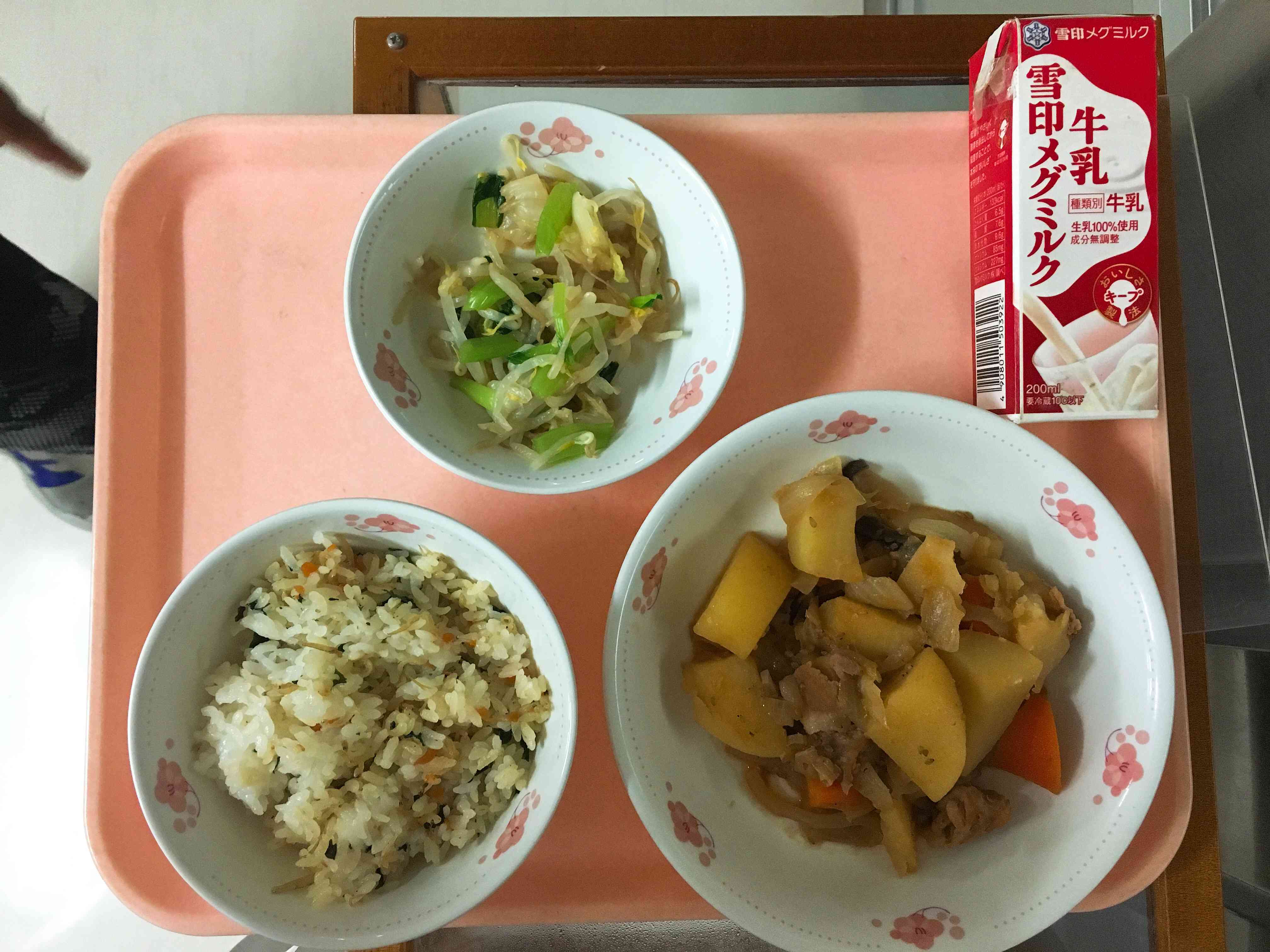 磯ごはん、韓国風肉じゃが、おひたし(辛子醤油)