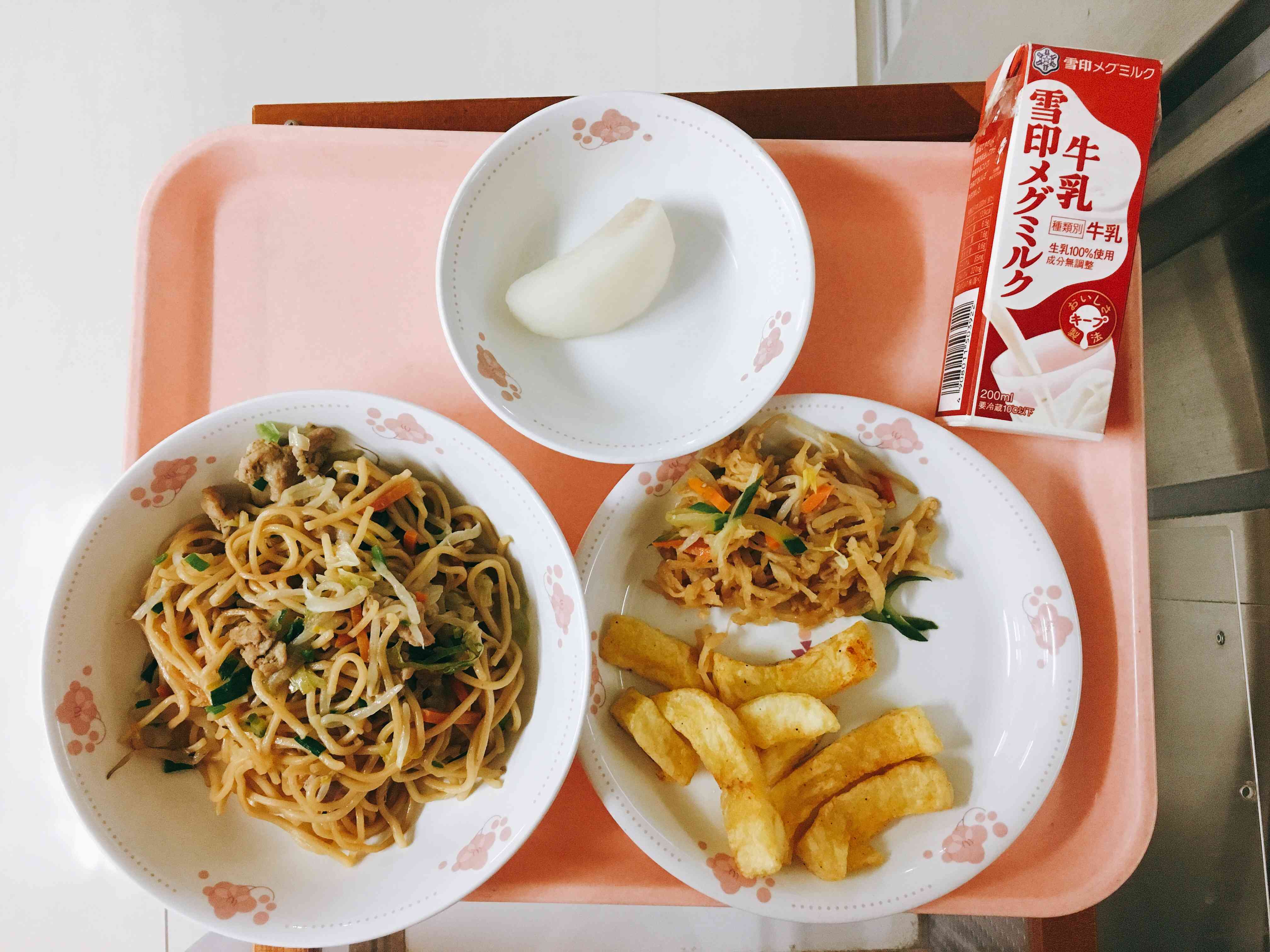 ねぎ塩焼きそば、スパイシーポテト、はりはり漬け