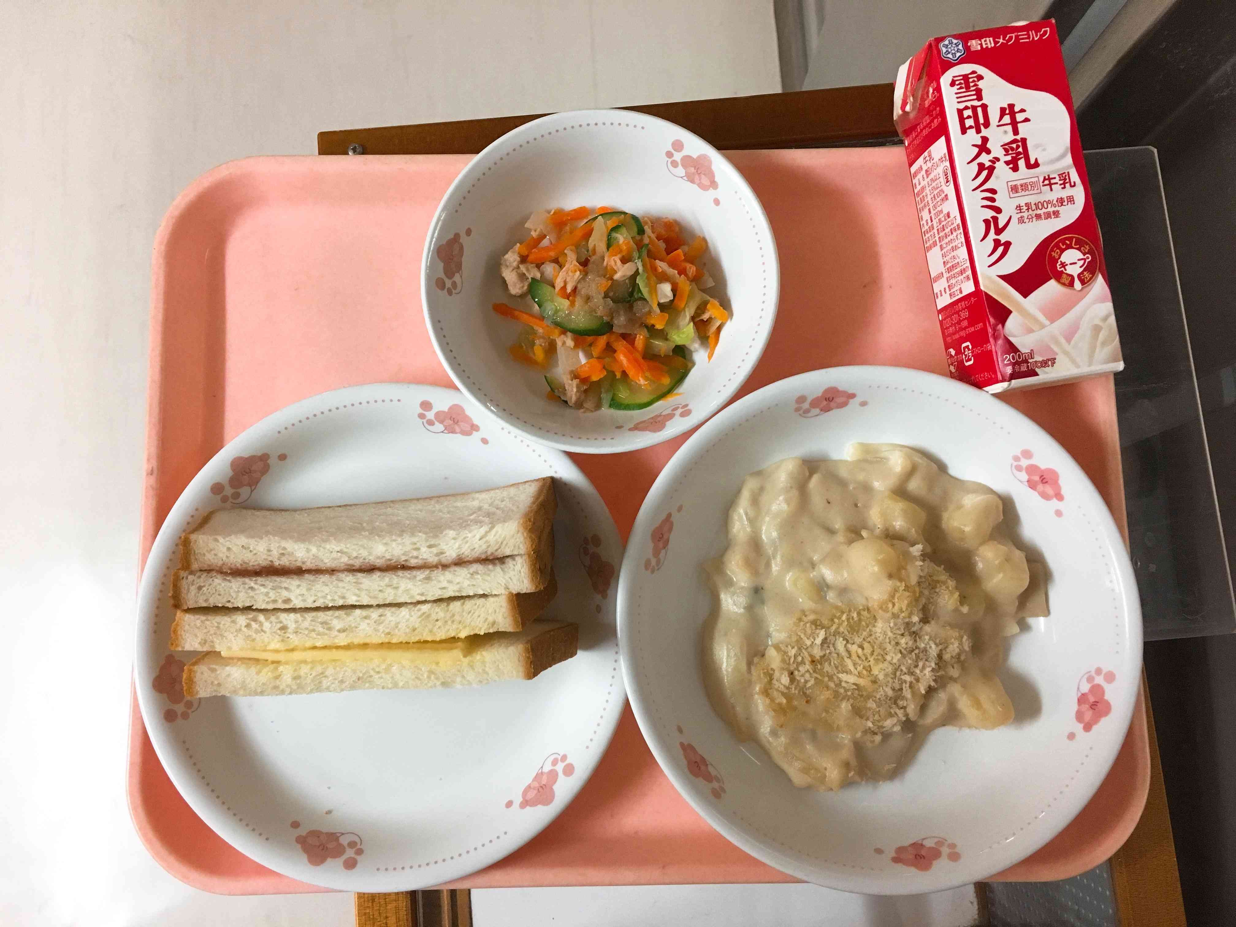 ジャムサンド、チーズサンド、ポテトグラタン、にんじんとツナのサラダ