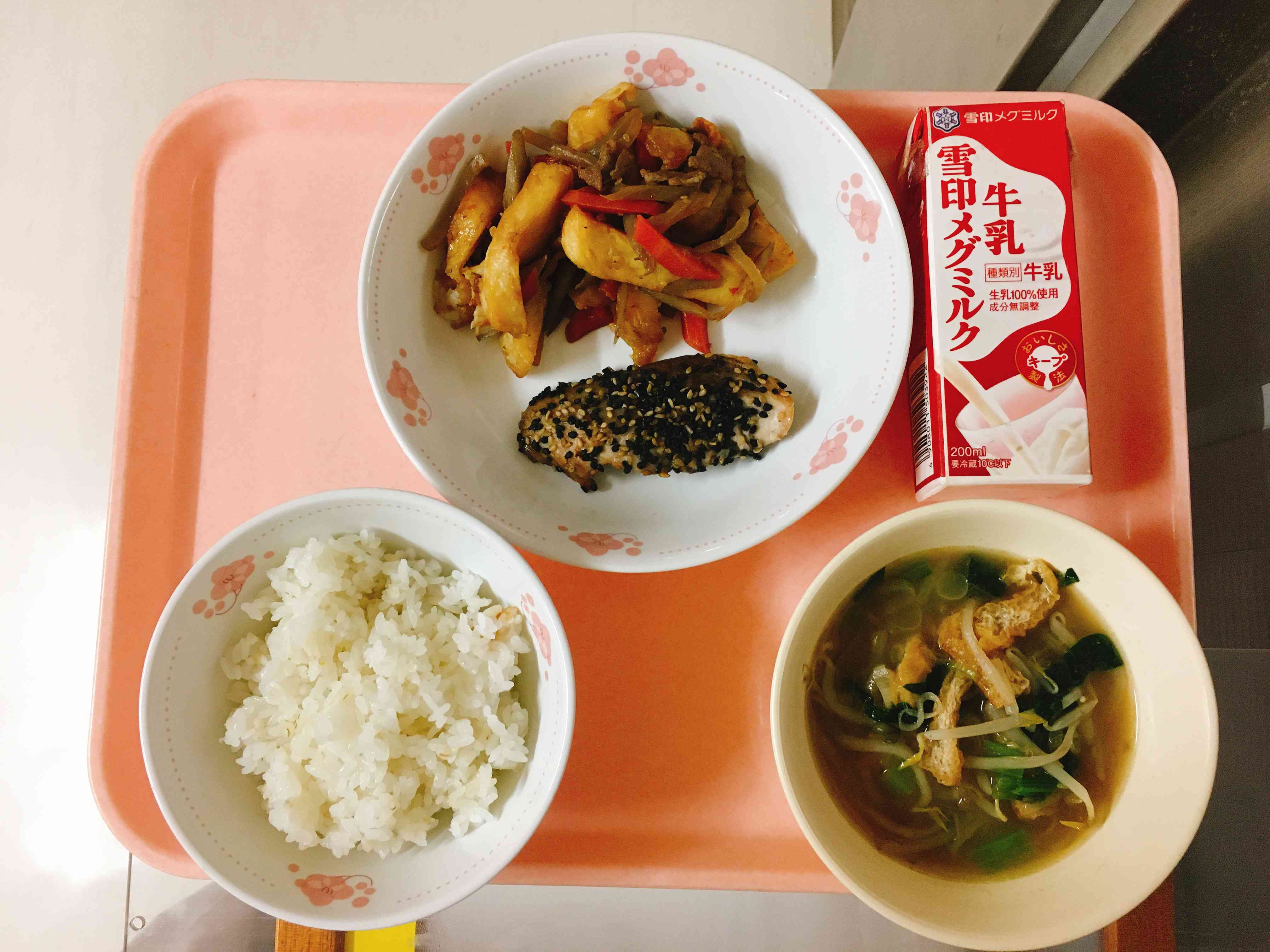 ごはん、しいらの南部焼き、じゃがいものきんぴら炒め、もやしのみそ汁
