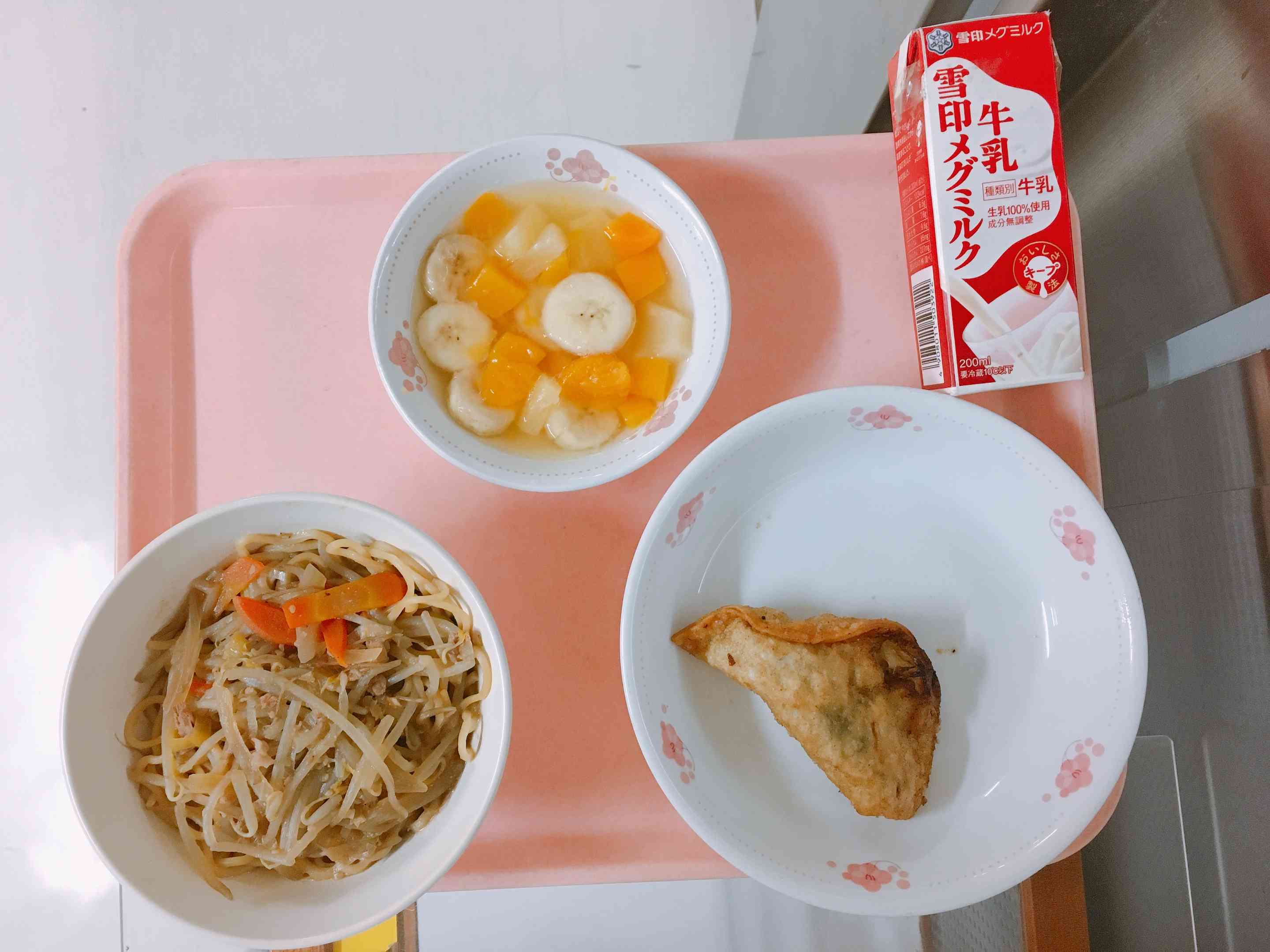 みそラーメン、ジャンボ餃子、フルーツポンチ