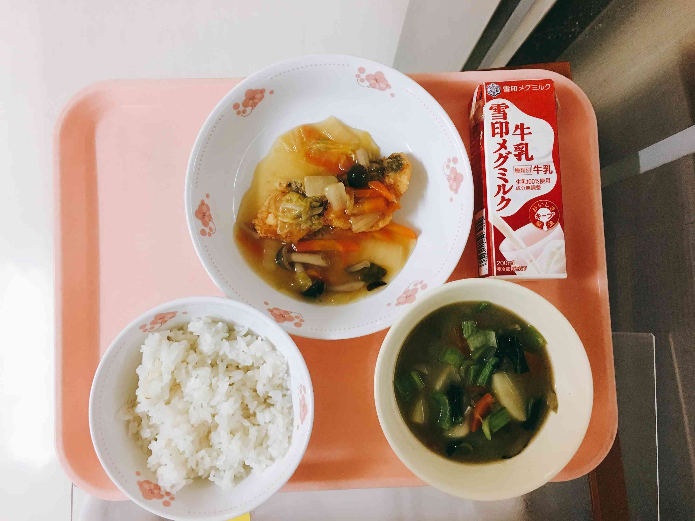 ごはん、白身魚の野菜あんかけ、野菜のみそ汁