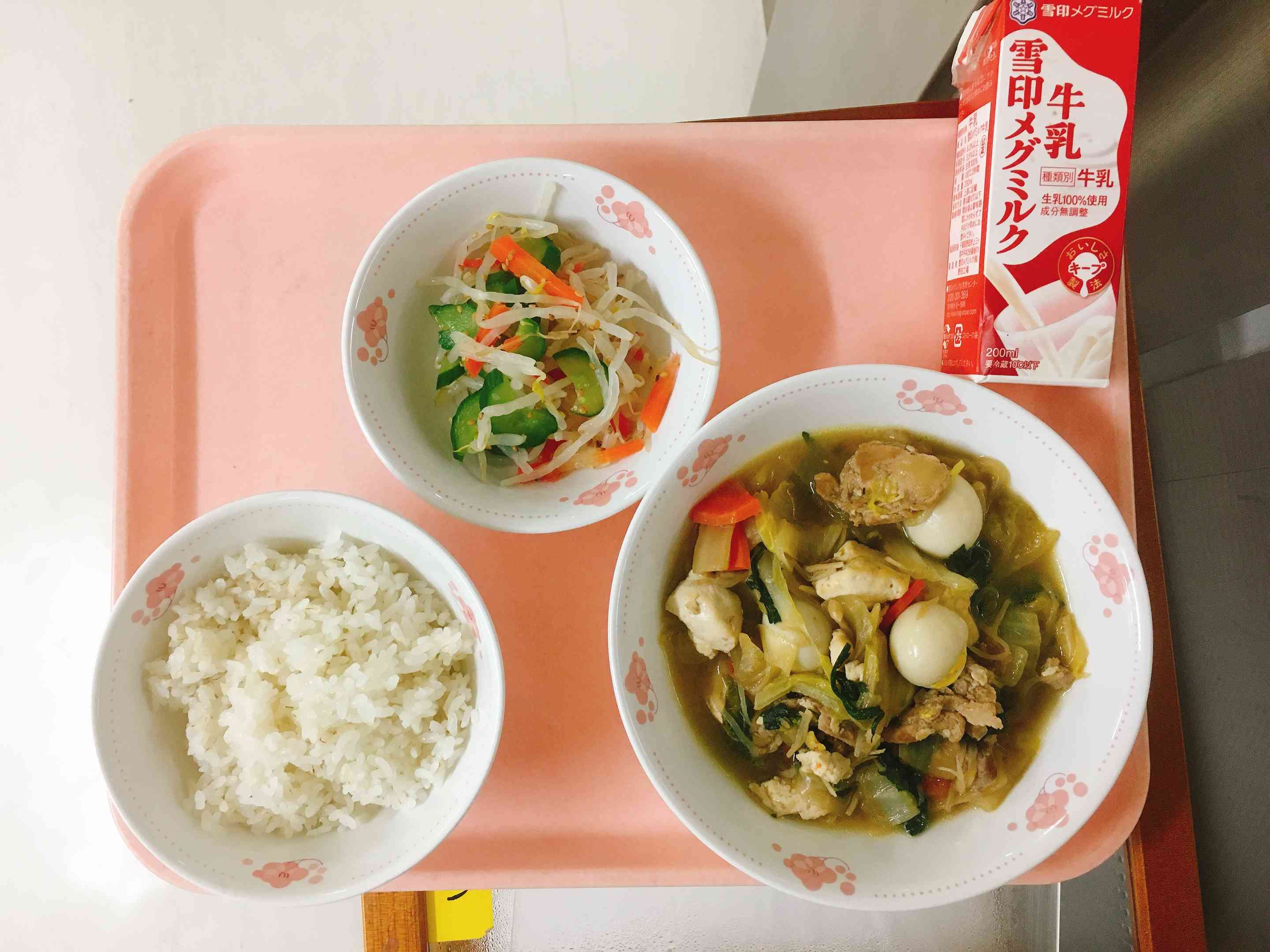 ごはん、すき焼き風煮物、おひたし(ごま酢)