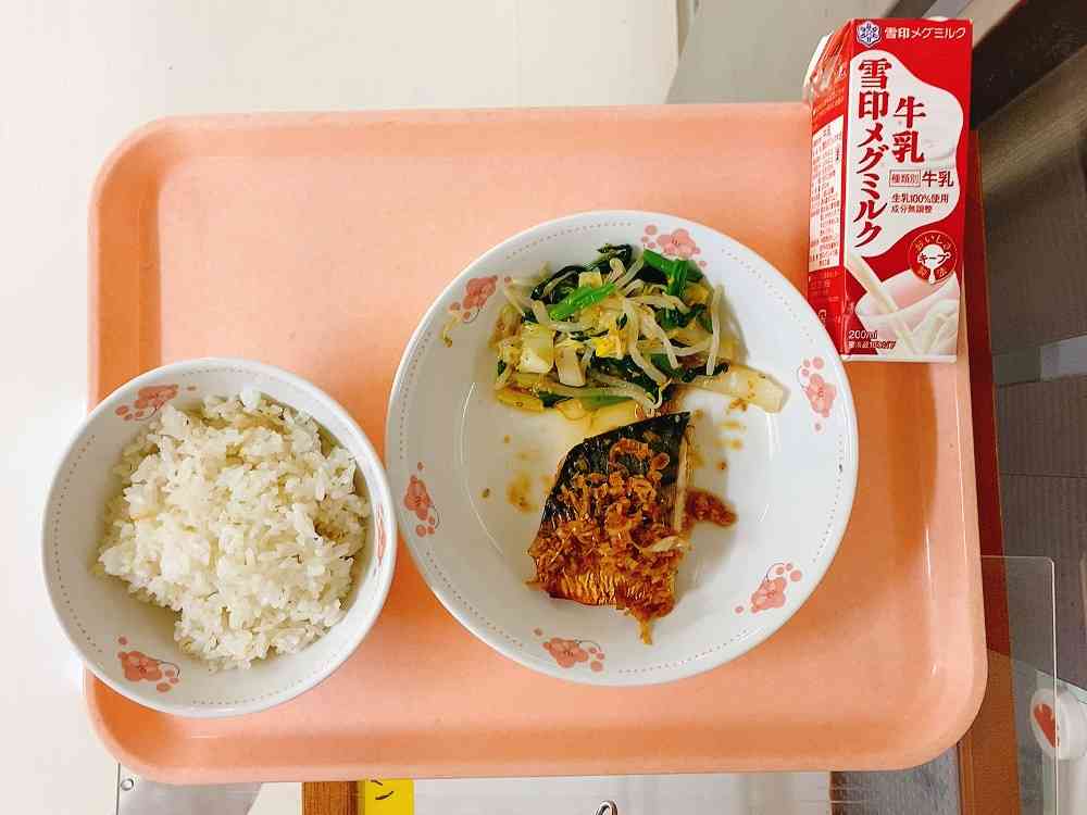 ごはん、さばのネギソースがけ、おひたし(ごまかけ)